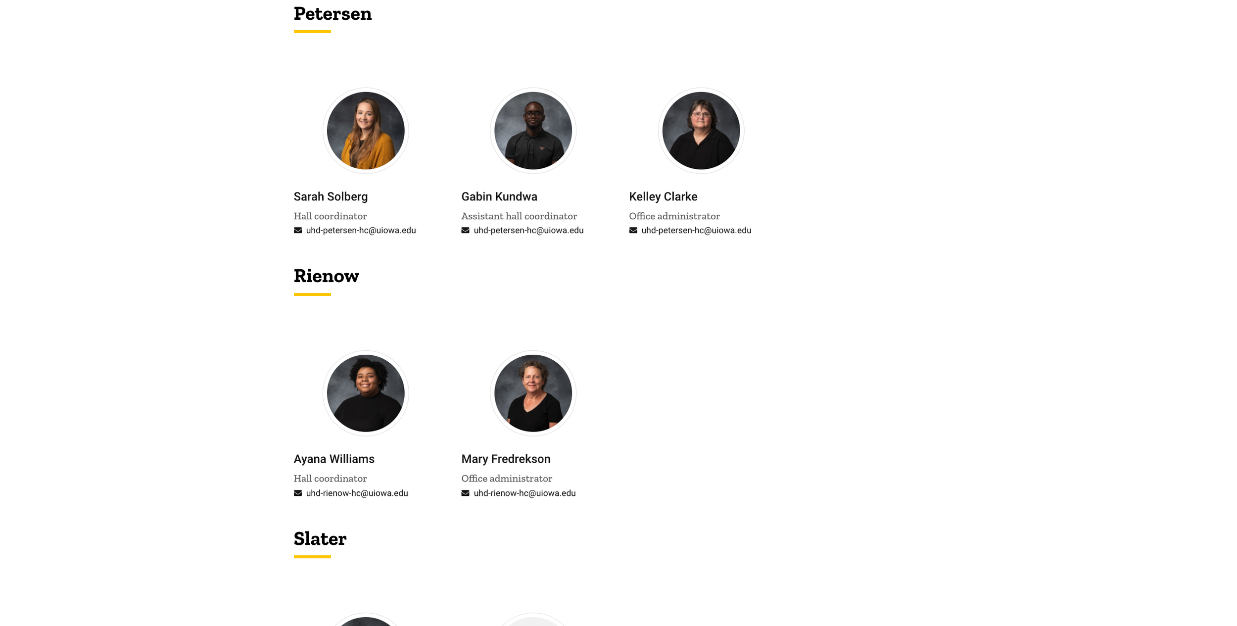 This project involved an entire redesign of housing.uiowa.edu. It has been 5 1/2 years since a major redesign. It was redesigned in the spring 2022 using Drupal CSM and moved to SiteNow v3 in order to ensure web brand standards across the University of Iowa. I worked with 10 task force team members in University Housing and Dining, conducted usability testing on target audience demographics, gathered in-depth Google analytics, conducted a card sort to determine a new menu structure, laid out all site pages, wrote all site copy, selected all site images, and worked with the Office of Strategic Communication (OSC) web development team to have customized development on residence hall pages and a custom hall selector based on taxonomy terms on this site. This gallery showcases the homepage, reasons why students should choose to live on campus at Iowa, living learning communities, residence halls, my housing (a section where current residents of the halls can find the information they need).